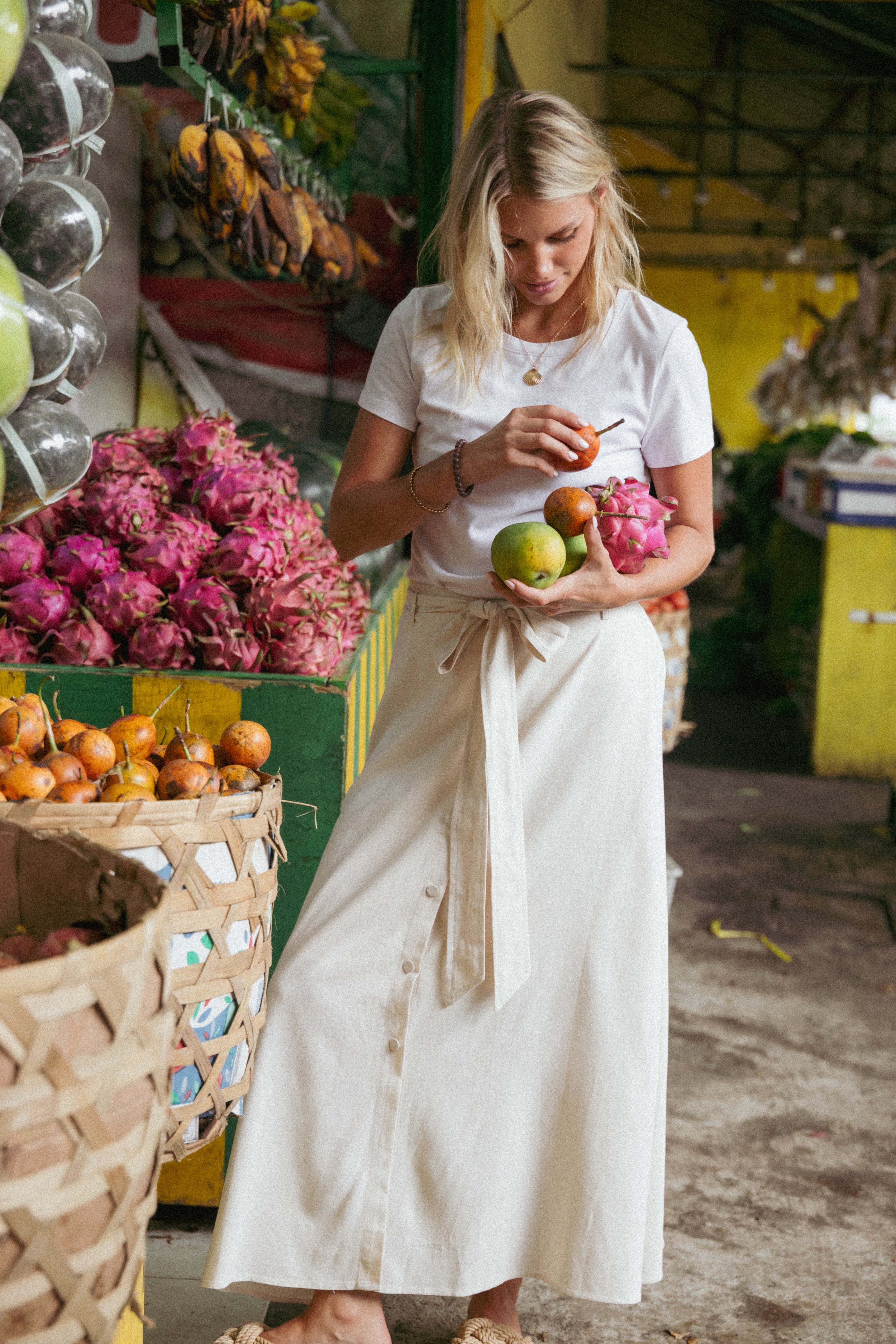 DETAILS Elevate your wardrobe essentials with the effortlessly chic Xander Tie Waist Midi Skirt in Oatmeal. Designed with a high-rise fit and an elasticized back waistband, it combines all-day comfort with a perfectly tailored look.